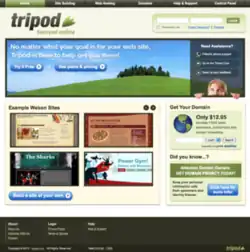 Although the feature was an afterthought originally, Tripod soon became known as a place where people could create free web pages, competing with the likes of GeoCities and Angelfire.[3] Criticizing AOL, the existing leader in this space, for its "walled-garden" approach, Peabody described the company's aims: "Our idea is to build a community through user-created and user-based content."[4] A reviewer in The Washington Post recommended Tripod over GeoCities for giving users an easier URL to remember, and because GeoCities sites had a tendency to crash computers.[5]