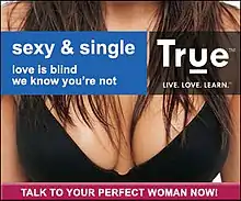 True advertised aggressively online and spent $52.2 million in online advertising from January to November 2006, more than any other online dating service. True's ads vary in theme and often feature provocatively dressed women with sex-themed taglines such as "It's nice to be naughty." These ads were particularly prevalent on MySpace. Partly because of its ad campaign, True became, in only four years since its founding, one of the most visited sites in the online dating industry, according to The New York Times.