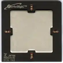 The TurboSPARC is a microprocessor that implements the SPARC V8 instruction set architecture (ISA) developed by Fujitsu Microelectronics, Inc. (FMI), the United States subsidiary of the Japanese multinational information technology equipment and services company Fujitsu Limited located in San Jose, California. It was a low-end microprocessor primarily developed as an upgrade for the Sun Microsystems microSPARC-II-based SPARCstation 5 workstation. It was introduced on 30 September 1996, with a 170 MHz version priced at US$499 in quantities of 1,000.[1] The TurboSPARC was mostly succeeded in the low-end SPARC market by the UltraSPARC IIi in late 1997, but remained available.