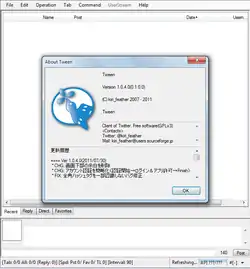- "Tween, A Twitter Client for Windows beta release". Hatena Diary.