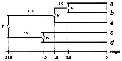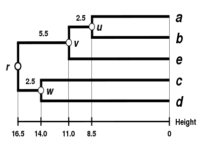 The dendrogram is now complete.[5] It is ultrametric because all tips ( to ) are equidistant from :