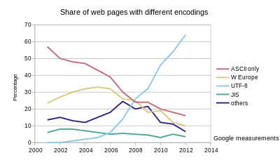 - Davis, Mark (2012-02-03). "Unicode over 60 percent of the web". Official Google blog. Archived from the original on 2018-08-09. Retrieved 2020-07-24.