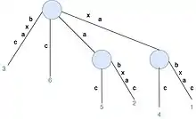 In computer science, Ukkonen's algorithm is a linear-time, online algorithm for constructing suffix trees, proposed by Esko Ukkonen in 1995.[1] The algorithm begins with an implicit suffix tree containing the first character of the string. Then it steps through the string, adding successive characters until the tree is complete. This order addition of characters gives Ukkonen's algorithm its "on-line" property. The original algorithm presented by Peter Weiner proceeded backward from the last character to the first one from the shortest to the longest suffix.[2] A simpler algorithm was found by Edward M. McCreight, going from the longest to the shortest suffix.[3]