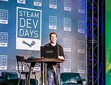 Valve announced Steam, its digital distribution service, at the 2002 Game Developers Conference.[90][91] It was launched in September 2003 and was first used to deliver patches and other updates to Valve's online games.[92][93]