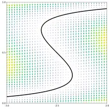 Consider first the autonomous case, with . Set , and vary in . As decreases, the system has 1 stable point, then has 2 stable points and 1 unstable point, and finally has 1 stable point again. Explicitly, the stable points are .