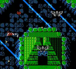 The NES version includes the added feature of collecting "zeny" as currency, which is used to buy improved weaponry and armor. The NES version emulates the controls of the arcade version by locking the facing of the character in one direction for as long as the "fire" button is depressed. Weapons no longer have limited ammunition. The player character begins with a flamethrower but, when the player loses a life, it is changed to a machine gun.