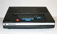 The VideoBrain Family Computer was designed and produced by Umtech Inc., doing business as the VideoBrain Computer Company of California in 1977. It was not widely available, although Macy's department store briefly carried the computer on its shelves. It was sold in various configurations, and the price ranged from $500 to $1100 depending on the accessories chosen.[6] New software for the VideoBrain was available on cartridge,[7] which was a first for home computer systems[8] (Later price reductions brought costs down to $300 for the computer by itself, and $350–900 for the packaged deals).[9]
