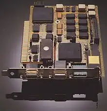 In September 1987, Video Seven announced their first VGA-compatible card, the Vega VGA, for an October release.[21] This was six months after IBM launched Video Graphics Array (VGA), their next-generation video graphics standard, in April 1987 with the IBM PS/2, the intended successor to their IBM PC model line.[7] Unlike their earlier PCs, the PS/2 had the video circuitry located on the motherboard; as well, they redesigned the bus with the PS/2 to an incompatible standard they dubbed Micro Channel.[4] On its announcement, Video Seven proclaimed the Vega VGA to be the first graphics card that was hardware-compatible with VGA for ISA machines (ISA being the bus of the IBM PC and its clones).[21] Earlier contenders from Sigma Designs and STB Systems, released in the summer of 1987, came with software utilities to draw Mode 13h graphics but which lacked the ability to render VGA graphics in other higher-resolution modes.[22] While the Vega VGA may have been the first VGA-compatible ISA board, on launch it suffered from some incompatibility with popular software, such as Windows/386 and its virtual 8086 mode.[23] Compaq's Video Graphics Controller Board, released in November 1987, is thus credited by PC Magazine as the first fully compatible VGA card for ISA machines.[24][25]: 188–191