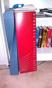 The Toaster was announced at the World of Commodore expo in 1987[4] and released as a commercial product in December 1990[5] for the Commodore Amiga 2000 computer system, taking advantage of the video-friendly aspects of that system's hardware to deliver the product at an unusually low cost of $2,399.[5] The Amiga was well adapted to this application in that its system clock at 7.158 MHz was precisely double that of the NTSC color carrier frequency, 3.579 MHz, allowing for simple synchronization of the video signal. The hardware component is a full-sized card that is installed into the Amiga 2000's unique single video expansion slot rather than the standard bus slots, and therefore cannot be used with the A500 or A1000 models. The card has several BNC connectors in the rear, which accepts four video input sources and provided two outputs (preview and program). This initial generation system is essentially a real-time four-channel video switcher.