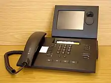 - Audio output: usually loudspeakers associated with the display device or telephone