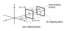 In 3D computer graphics, a viewing frustum[1] or view frustum[2] is the region of space in the modeled world that may appear on the screen; it is the field of view of a perspective virtual camera system.[2]