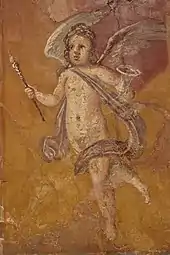 The luxury of the villa is evidenced not only by the many works of art, but especially by the large number of rare bronze statues found there, all masterpieces. The villa housed a collection of at least 80 sculptures of magnificent quality,[12] many now conserved in the Naples National Archaeological Museum.[2] Among them is the bronze Seated Hermes, found at the villa in 1758. Around the bowl of the atrium impluvium were 11 bronze fountain statues depicting Satyrs pouring water from a pitcher and Amorini pouring water from the mouth of a dolphin. Other statues and busts were found in the corners around the atrium walls.[2]