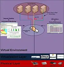 A virtual security switch is a software Ethernet switch with embedded security controls within it that runs within virtual environments such as VMware vSphere, Citrix XenDesktop, Microsoft Hyper-V and Virtual Iron. The primary purpose of a virtual security switch is to provide security measures such as isolation, control and content inspection between virtual machines.