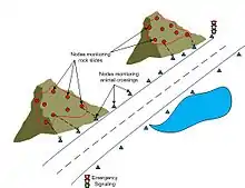 - E.g., monitoring rock slides and animal crossing within a mountainous terrain. Different types of devices that detect these phenomena can relay each other for data transfer without having to deploy separate networks. Here the advantage is saving in hardware cost.