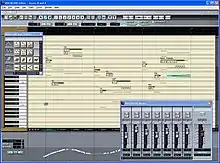 The Score Editor is a piano roll style editor to input notes, lyrics, and some expressions. When entering lyrics, the editor automatically converts them into Vocaloid phonetic symbols using the built-in pronunciation dictionary.[3] The user can directly edit the phonetic symbols of unregistered words.[14] The Score Editor offers various parameters to add expressions to singing voices. The user is supposed to optimize these parameters that best fit the synthesized tune when creating voices.[13] This editor supports ReWire and can be synchronized with DAW. Real-time "playback" of songs with predefined lyrics using a MIDI keyboard is also supported.[3]