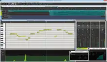 The Vocaloid 4 engine allows the importing of Vocaloid 2 and Vocaloid 3 vocals, though Vocaloid 2 vocals must have already been imported into Vocaloid 3 for this to work.[2] The new engine includes other features, but not all of them are accessible by Vocaloid 2 and Vocaloid 3 vocals. One of the new features is a "Growl" feature which allows vocals built for Vocaloid 4 to take on a growl-like property in their singing results. Cross-synthesis was also added, allowing the user to switch between two of a character's vocals built for the same language smoothly using a time-varying parameter. This feature is accessible when using Vocaloid 3 and Vocaloid 4 vocals, but not Vocaloid 2. Cross-synthesis only works with vocals from the same character, making use of packages like VY1v4 possible, but not packages such as Anon and Kanon.[1][3] Another feature included is Pitch Rendering, which all imported vocals can use. This displays the effective pitch curve on the user interface. Finally, real-time input has been included in this version and is another feature which all vocals can use. VSQX files made for Vocaloid 3 work in Vocaloid 4, but they will not work the other way around.[1]