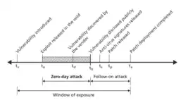 Despite developers' goal of delivering a product that works entirely as intended, virtually all software and hardware contains bugs.[1] If a bug creates a security risk, it is called a vulnerability.[2][3][4] Software patches are often released to fix identified vulnerabilities, but those that remain unknown (zero days) as well as those that have not been patched are still liable for exploitation.[5] Vulnerabilities vary in their ability to be exploited by malicious actors,[2] and the actual risk is dependent on the nature of the vulnerability as well as the value of the surrounding system.[6] Although some vulnerabilities can only be used for denial of service attacks, more dangerous ones allow the attacker to inject and run their own code (called malware), without the user being aware of it.[2] Only a minority of vulnerabilities allow for privilege escalation, which is necessary for more severe attacks.[7] Without a vulnerability, the exploit cannot gain access.[8] It is also possible for malware to be installed directly, without an exploit, if the attacker uses social engineering or implants the malware in legitimate software that is downloaded deliberately.[9]