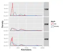 In May 2021, aerospace engineer Richard Godfrey suggested examining historical WSPR data as a way to define the flight path of Malaysia Airlines Flight 370 on 8 March 2014.[7] In November 2021, Godfrey stated his belief that his analysis indicates the aircraft flew in circles for around 22 minutes in an area 150 nautical miles (280 km; 170 mi) from the coast of Sumatra before vanishing, later proposing a search area centered around 33.177°S 95.3°E.[8][9][10][11]