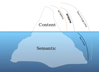 In a WYSIWYM editor, the user writes the contents in a structured way, marking the content according to its meaning, its significance in the document, and leaves its final appearance up to one or more separate style sheets. In essence, it aims to accurately display the contents being conveyed, rather than the actual formatting associated with it.[3]