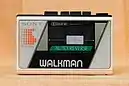 Walkman (Japanese: ウォークマン, Hepburn: U~ōkuman), is a brand of portable audio players manufactured and marketed by Japanese company Sony since 1979. The original Walkman started out as a portable cassette player[3][4] and the brand was later extended to serve most of Sony's portable audio devices; since 2011 it consists exclusively of digital flash memory players. The current flagship product as of 2022 is the WM1ZM2 player.[5]