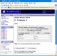 WeBWorK is an online homework delivery system primarily used for mathematics and science. It allows students to complete their homework over the web, and receive instantaneous feedback as to the correctness of their responses. WeBWorK uses a Perl-based language called PG to specify exercises, which allows instructors a great deal of flexibility in how exercises are presented.[1]