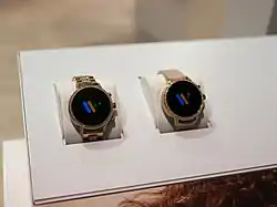 Wear OS can synchronize notifications from a paired device, and supports voice control with the "OK Google" hotword along with gesture-based input.[42] Wear OS integrates with Google services such as the Google Assistant and Google Mobile Services (including Gmail, Google Maps, and Google Wallet), as well as third-party watch apps from Play Store.[43][44] From the watch face, the user can swipe up to access their notifications, down to access a quick settings panel, from the left to view their personalized Google feed, and the right to view Google Fit.[42] Via Google Fit and similar applications, Wear OS supports ride and run tracking, and devices containing heart rate sensors can perform a reading on-demand, or at intervals throughout the day.[45] The watch can control media being played on streamed on paired devices.[44][43]