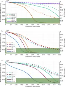 - ↑ Golledge, Nicholas R.; Keller, Elizabeth D.; Gomez, Natalya; Naughten, Kaitlin A.; Bernales, Jorge; Trusel, Luke D.; Edwards, Tamsin L. (2019). "Global environmental consequences of twenty-first-century ice-sheet melt". Nature. 566 (7742): 65–72. Bibcode:2019Natur.566...65G. doi:10.1038/s41586-019-0889-9. ISSN 1476-4687. PMID 30728520. S2CID 59606358.