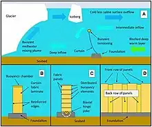 - 1 2 3 4 5 6 Wolovick, Michael; Moore, John; Keefer, Bowie (27 March 2023). "Feasibility of ice sheet conservation using seabed anchored curtains". PNAS Nexus. 2 (3): pgad053. doi:10.1093/pnasnexus/pgad053. PMC 10062297. PMID 37007716.