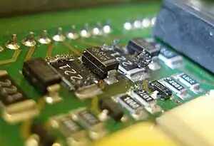 Tin whiskers do not have to be airborne to damage equipment, as they are typically already growing directly in the environment where they can produce short circuits, i.e., the electronic equipment itself. At frequencies above 6 GHz or in fast digital circuits, tin whiskers can act like miniature antennas, affecting the circuit impedance and causing reflections. In computer disk drives they can break off and cause head crashes or bearing failures.[9] Tin whiskers often cause failures in relays and have been found upon examination of failed relays in nuclear power facilities.[10] Pacemakers have been recalled due to tin whiskers.[11] Research has also identified a particular failure mode for tin whiskers in vacuum (such as in space), where in high-power components a short-circuiting tin whisker is ionized into a plasma that is capable of conducting hundreds of amperes of current, massively increasing the damaging effect of the short circuit.[12] The possible increase in the use of pure tin in electronics due to the RoHS directive drove JEDEC and IPC to release a tin whisker acceptance testing standard and mitigation practices guideline intended to help manufacturers reduce the risk of tin whiskers in lead-free products.[13]