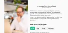 WikiTribune was a for-profit site[5] funded by donors,[17] including donations by readers.[8] Crowdfunding opened in April 2017 and concluded in May.[18] Supporters were asked to pay £10 or $15 per month,[19] but access to the news was free.[18] It was stated that having no shareholders, advertisers or subscribers would reduce commercial pressures.[20] Supporters who donated to the site were able to help decide which subjects the site would focus on.[3]