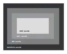 There are three major types of metafiles – a WMF is a 16-bit format introduced in Windows 3.0. It is the native vector format for Microsoft Office applications such as Word, PowerPoint, and Publisher. As of 2023, revision 17 of the Windows Metafile Format specification is available.[2] EMF files, which replaced WMF files, work on the same principle only it is a 32-bit file format that also allows for the embedding of private data within "comment" records.[3] EMF+ is an extension to EMF files and embedded in these comment records, allowing for images and text using commands, objects and properties that are similar to Windows GDI+.[4]