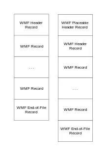 WMF files are structured by a series of records, starting with a number of control records: the header record,[19][22] the aforementioned optional placeable record,[23] and finished by an end of file record.[19][24]