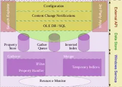 The search service consists of several components, including the Gatherer, the Merger,[22] the Backoff Controller, and the Query Processor, among others. The Gatherer retrieves the list of URIs that need to be crawled and invokes proper protocol handler to access the store that hosts the URI, and then the proper property-handler (to extract metadata) and IFilter to extract the document text. Different indices are created during different runs; it is the job of the Merger to periodically merge the indices.[22] While indexing, the indices are generally maintained in-memory and then flushed to disk after a merge to reduce disk I/O. The metadata is stored in property store, which is a database maintained by the ESE database engine.[22] The text is tokenized and the tokens are stored in a custom database built using Inverted Indices.[22] Apart from the indices and property store, another persistent data structure is maintained: the Gather Queue.[22] The Gather Queue maintains a prioritized queue of URIs that needs indexing. The Backoff Controller mentioned above monitors the available system resources, and controls the rate at which the indexer runs. It has three states:[22]