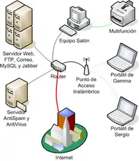 A wireless network is a computer network that uses wireless data connections between network nodes.[1] Wireless networking allows homes, telecommunications networks and business installations to avoid the costly process of introducing cables into a building, or as a connection between various equipment locations.[2] Admin telecommunications networks are generally implemented and administered using radio communication. This implementation takes place at the physical level (layer) of the OSI model network structure.[3]