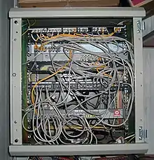 A wiring cupboard is a small room commonly found in institutional buildings, such as schools and offices, where electrical connections are made. While they are used for many purposes, their most common use is for computer networking where it may be called a premises wire distribution room (PWD room). Many types of network connections place limits on the distance between end user equipment, such as personal computers, and network access devices, such as routers. These restrictions might require multiple wiring cupboards on each floor of a large building.