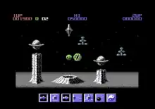 Wizball is a horizontally scrolling shooter written by Jon Hare and Chris Yates (co-founders of Sensible Software) and released in 1987 for the Commodore 64[1] and later in the year for the ZX Spectrum and Amstrad CPC.[2] Versions for the Amiga and Atari ST were released in the following year.[3] Wizball was also ported to IBM PC compatibles (for the Color Graphics Adapter) and the Thomson MO5.