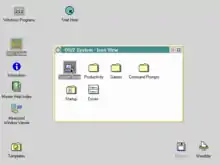 The Workplace Shell (WPS) is an object-oriented desktop shell (also called desktop environment) produced by IBM's Boca Raton development lab for OS/2 2.0. It is based on Common User Access and made a radical shift away from the Program Manager type interface that earlier versions of OS/2 shared with Windows 3.x or the application-oriented WIMP interface of the Apple Macintosh. The Workplace Shell was also used in OS/2 Warp 3 and Warp 4, and the OS/2-based operating systems eComStation and ArcaOS.