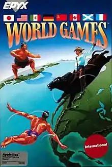 World Games is a sports video game developed by Epyx for the Commodore 64 in 1986. Versions for the Apple IIGS, Amstrad CPC, ZX Spectrum, Master System and other contemporary systems were also released. The NES version was released by Milton Bradley, and ported by Software Creations on behalf of producer Rare.