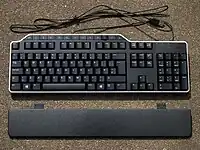 A wrist rest (a.k.a. palm rest, wrist support, or palm support)[1] is a device used to support the wrists while using a computer keyboard or mouse.[2] Wrist rests have common usage in the workplace.[3]