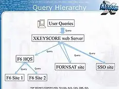 XKeyscore (XKEYSCORE or XKS) is a secret computer system used by the United States National Security Agency (NSA) for searching and analyzing global Internet data, which it collects in real time. The NSA has shared XKeyscore with other intelligence agencies, including the Australian Signals Directorate, Canada's Communications Security Establishment, New Zealand's Government Communications Security Bureau, Britain's Government Communications Headquarters, Japan's Defense Intelligence Headquarters, and Germany's Bundesnachrichtendienst.[1]