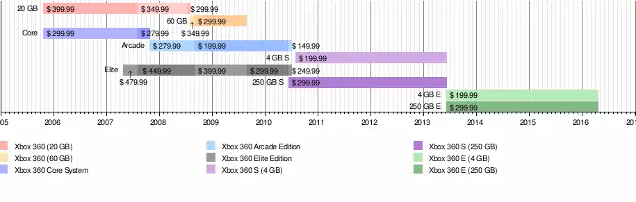 - ↑ "Microsoft Announces Xbox 360 Price for Europe and North America: Starts at $299.99 U.S./€299.99/£209.99". Microsoft News Center (Press release). August 17, 2005. Archived from the original on September 11, 2013. Retrieved December 9, 2019.