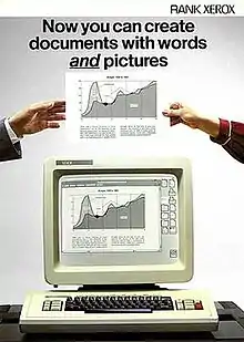 The Xerox Star workstation, officially named Xerox 8010 Information System, is the first commercial personal computer to incorporate technologies that have since become standard in personal computers, including a bitmapped display, a window-based graphical user interface, icons, folders, mouse (two-button), Ethernet networking, file servers, print servers, and email.[2][3]