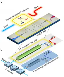 - ↑ A. Noguchi, R. Yamazaki, Y. Tabuchi, and Y. Nakamura, "Qubit-Assisted Transduction for a Detection of Surface Acoustic Waves near the Quantum Limit", Physical Review Letters 119, 180505 (2017), doi:10.1103/PhysRevLett.119.180505