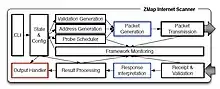 ZMap iterates on techniques utilized by its predecessor, Nmap, by altering the scanning method in a few key areas. Nmap sends out individual signals to each IP address and waits for a reply. As replies return, Nmap compiles them into a database to keep track of responses, a process that slows down the scanning process. In contrast, ZMap uses cyclic multiplicative groups, which allows ZMap to scan the same space roughly 1,300 times faster than Nmap.[6] The ZMap software takes every number from 1 to 232-1 and creates an iterative formula that ensures that each of the possible 32-bit numbers is visited once in a pseudorandom order.[3] Building the initial list of numbers for every IP address takes upfront time, but it is a fraction of what is required to aggregate a list of every sent and received probe. This process ensures that once ZMap starts sending probes out to different IPs, an accidental denial of service could not occur because an abundance of transmissions would not converge on one subnet at the same time.[7]