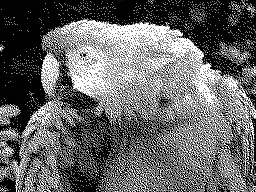 By using a monochrome monitor or black and white TV (or reducing the saturation settings of a colour TV), it is possible to take advantage of the differences in intensity over the Spectrum's colour range to generate a 15-shade greyscale image at 256x192 resolution.