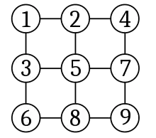 One may use ZDDs to represent simple paths in an undirected graph. For example, there are 12 ways to go from the upper left corner of a three by three grid (shown in Figure 11) to the lower right corner, without visiting any point twice.