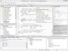 ZeroBrane Studio is a lightweight open-source Lua IDE with code completion, syntax highlighting, code analyzer, live coding, and debugging support for Lua 5.1, Lua 5.2, Lua 5.3, Lua 5.4, LuaJIT, and other Lua engines. ZeroBrane Studio is a cross-platform application written in Lua that runs on Windows (Windows XP+), Linux, and macOS (10.9+) operating systems. It uses the wxWidgets toolkit and the Scintilla component for file editing.