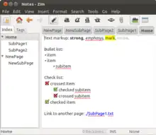 ![]() Zim (version 0.54) Screenshot of the editor window with some arbitrary text | |