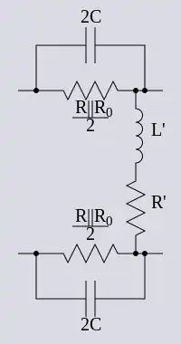 which is precisely the same as a bridged T section with series element Z. The series half-section is thus a series impedance of 2Z. By corresponding reasoning, the shunt half-section is a shunt impedance of 1⁄2Z' (or twice the admittance).
