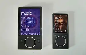 ![]() A Zune HD, the last portable media player in the Zune line | |